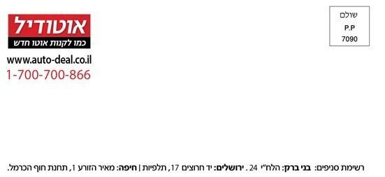 בהחלט. אנו מציעים הדפסה על מעטפות עם חלון (ימני או שמאלי) המיועדות למכתבים שבהם כתובת הנמען מודפסת ישירות על המסמך שבתוך המעטפה.